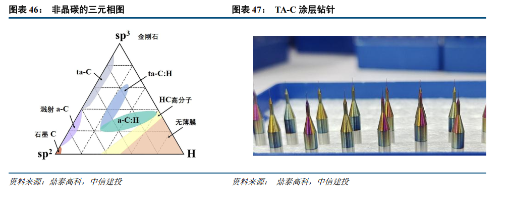 涂层技术能提升PCB刀具性能与寿命。涂层是刀具非常常见的一项工艺,在刀具形成后,外发涂层会让刀具的整体质量更加优秀,在润滑、抗耐磨、排屑等方面实现较大提升,涂层其实也分为很多不同的样式,常见的钻头涂层有黄钛TIN,紫钛高铝钛等。一般涂层刀具的切削力比未涂层刀具平均降低15%-20%左右,与之对应的则是涂层刀具寿命的提升。ta-C是一种无氢DLC涂层,其sp³与sp²键比值高,具有极高硬度和强润滑性,ta-C图层显著提升了孔位精度和加工品质,在有效降低断针发生几率、防止涂层钻针粘着,改善排尘等方面发挥重要作用。薄而光滑和高硬度等特点充分保证了刃口锋利,可应用于加工有色金属复合材料、中高TG、无卤素高速板、软板、铝基板、封装板等。
