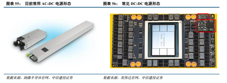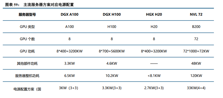 此外,伴随单机柜容纳GPU数量逐渐增多,机柜功耗总额快速提升(NVL 72总功耗已达120KW)。机柜类服务器占比的提升在三个层面对供电系统提出更高要求:1)更高性能的供电总线;2)更高压的交流与直流电(如DC/DC模块电压输入可达800V,从而大幅减少发热损耗);3)更低损耗的内部供电电路。从而使得电源获得了额外的溢价能力,市场空间更加广阔。