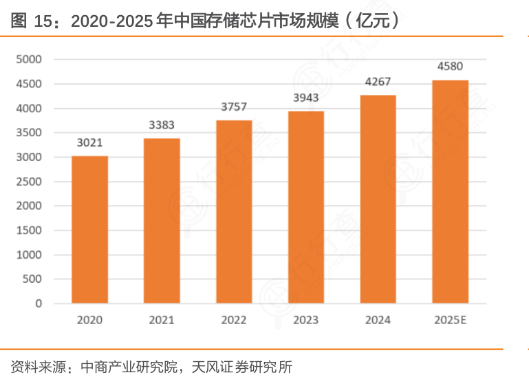 据中商产业研究院数据,2024年我国存储芯片市场规模超过4,000亿元。到2025年,市场规模预计将突破4,500亿元。整体来看,中国存储芯片市场在过去五年中保持了稳健的增长趋势,显示出强劲的发展潜力和市场需求。