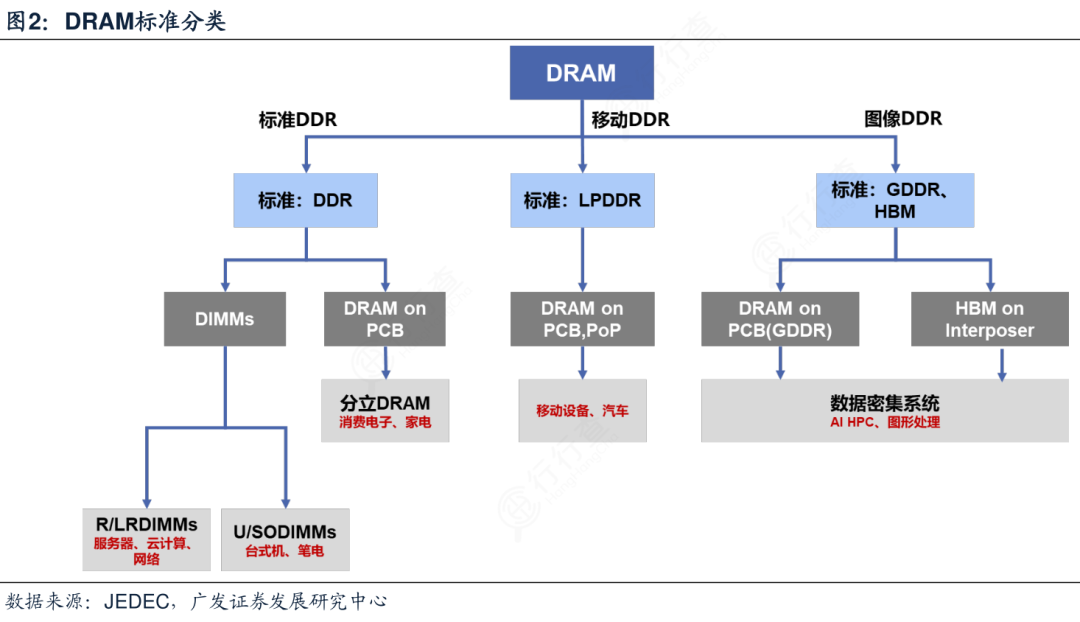 动态随机存储的主流技术分支包括:面向服务器端的DDR SDRAM,通过双倍数据速率技术提升带宽;面向移动设备的LPDDR系列,以低功耗和小尺寸为核心优势。
