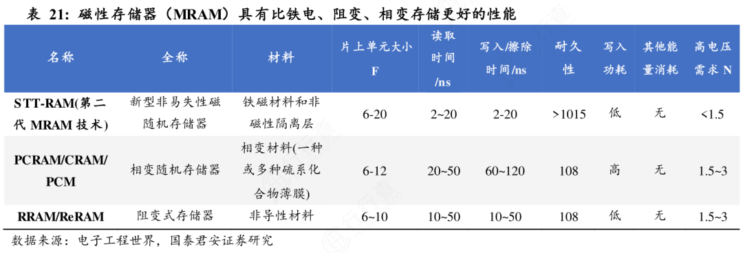 ReRAM(阻变存储器):利用金属氧化物薄膜的电阻变化存储数据,具有低功耗、高存储密度特性,有望应用于AI芯片的存算一体架构。