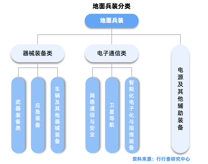 地面兵装是军工装备核心环节,主要是指用于地面作战的武器装备,包括坦克、装甲车辆等。