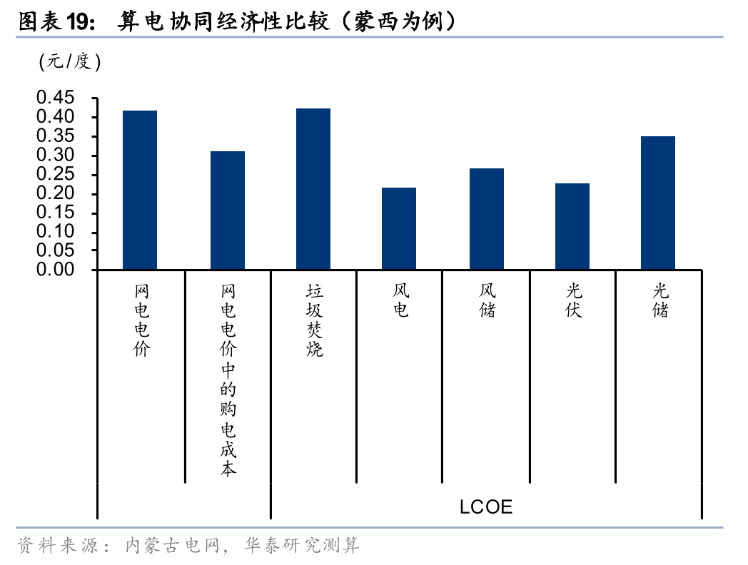 从项目实质上,“算电协同”可能更类似于“绿电直连”或“源网荷储”的特定场景,即电力用户主要为算力企业(数据中心,尤其是高功率密度的智算中心)。相比于此前我们测算的绿电直连,“算电协同”的几个主要区别在于:
