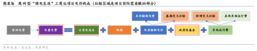 以上图的离网型项目为例,因为不需要电网保供,也不需要向电网缴纳基础电费和电量输配电费,没有下网电量自然也不需要支付线损和系统运行费,但是不可以逃避政府性基金和输配电费中隐含的交叉补贴部分,后者是工商业用户对居民和农业用电用户的补贴义务。