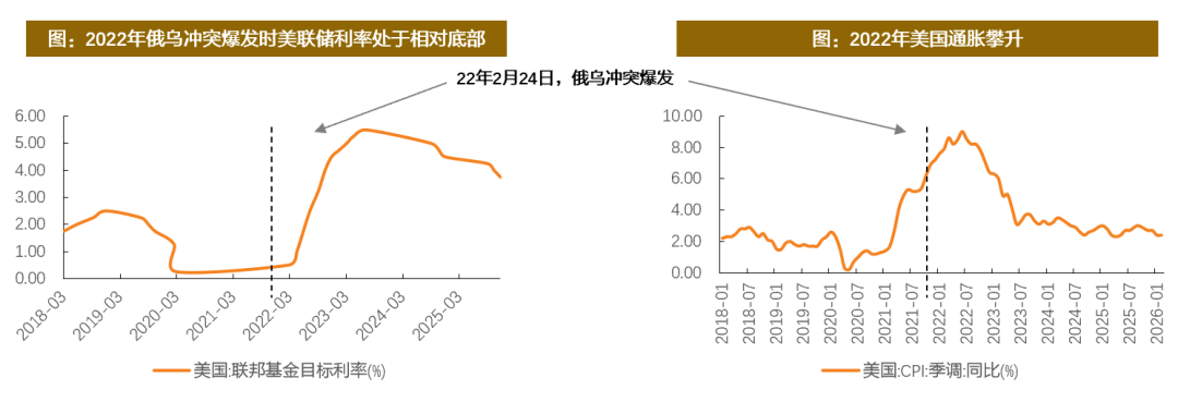 能源通胀辐射半径之变:从欧洲的“天然气劫”到全球的“原油通胀税”。两次冲突下,天然气和石油两种不同核心能源对通胀冲击范围截然不同,22年主要是欧洲,本次是全球,或是更大程度的压力测试,或形成系统性风险,并可能将影响美联储降息节奏,或是本轮走势更加谨慎的核心原因。
