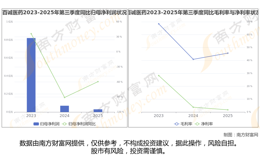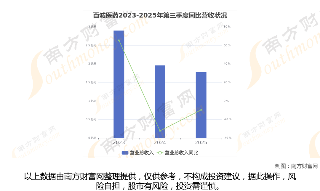 百诚医药披露了2025年第三季度财报。报告显示(如上图),百诚医药2025年第三季度实现营收1.78亿元,同比-9.62%。