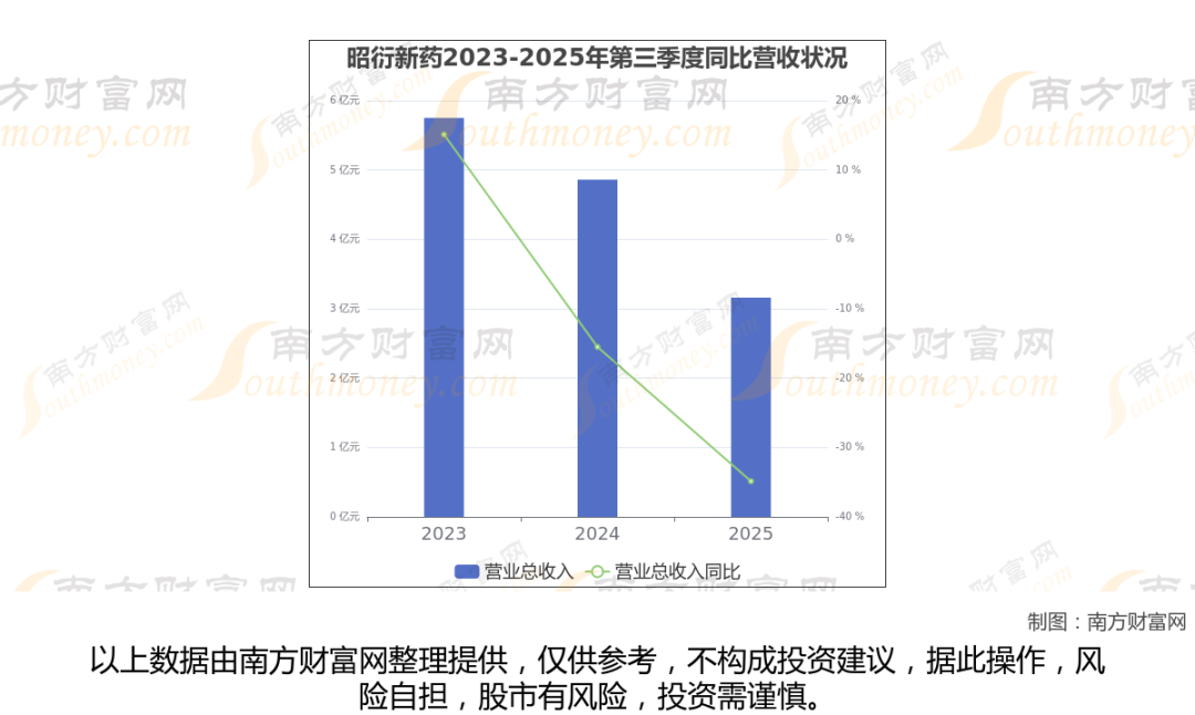于2025年第三季度,昭衍新药披露了其业绩表现(如上图),其中主营业务收入3.16亿元,相较于去年同期-34.87%。