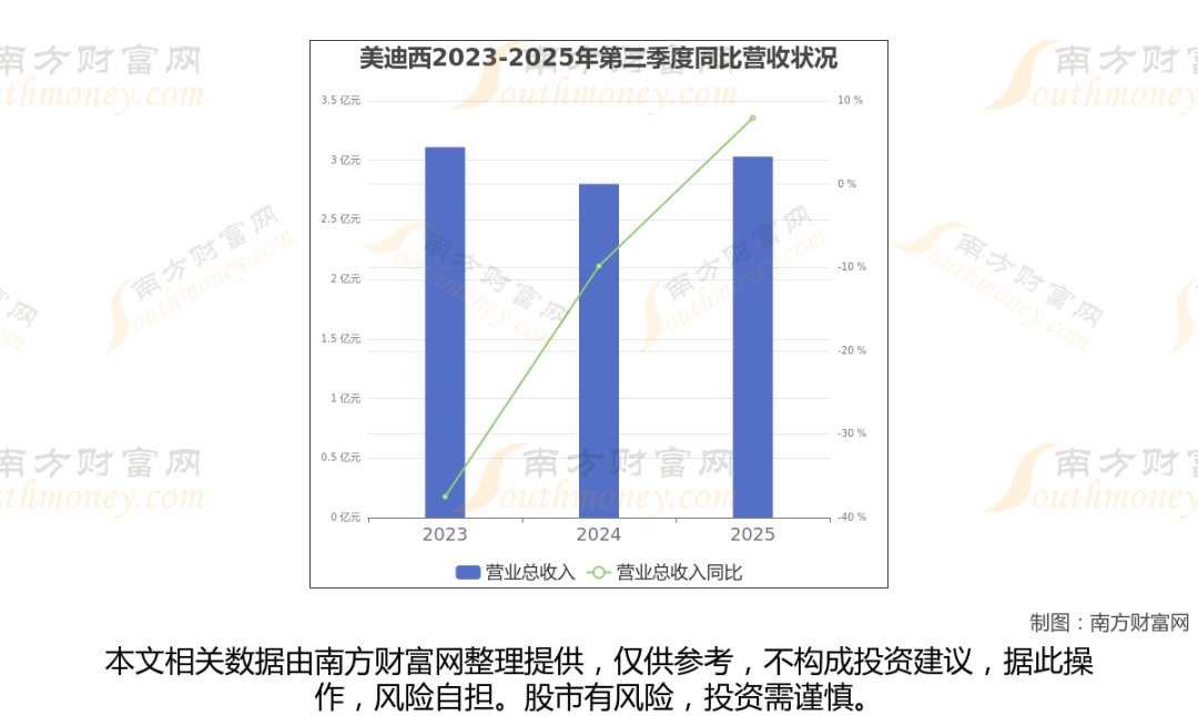 (如上图)美迪西披露2025年第三季度报告,报告期实现营收3.03亿元,同比7.94%。