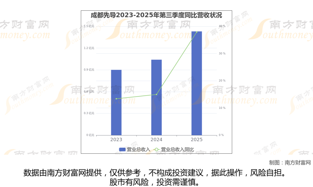 成都先导2025年第三季度报告显示(如上图),公司实现主营业务收入1.43亿元,较去年同期增长37.89%。