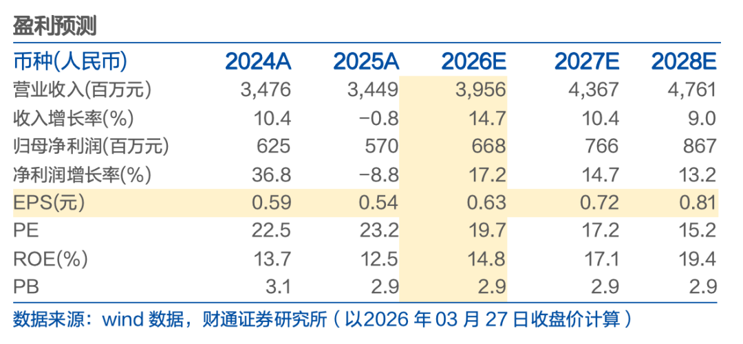 投资建议:公司2023-2025年分红总额占归母净利润比例为92.74%/97.62%/105.03%,并承诺2026-2028年现金分红比例不低于80%,强化公司股东回报。预计2026-2028年实现收入39.56/43.67/47.61亿元,同比增长14.7/10.4/9.0%;实现归母净利润6.68/7.66/8.67亿元,同比增长17.2/14.7/13.2%,对应PE分别为20/17/15x,维持“增持”评级。