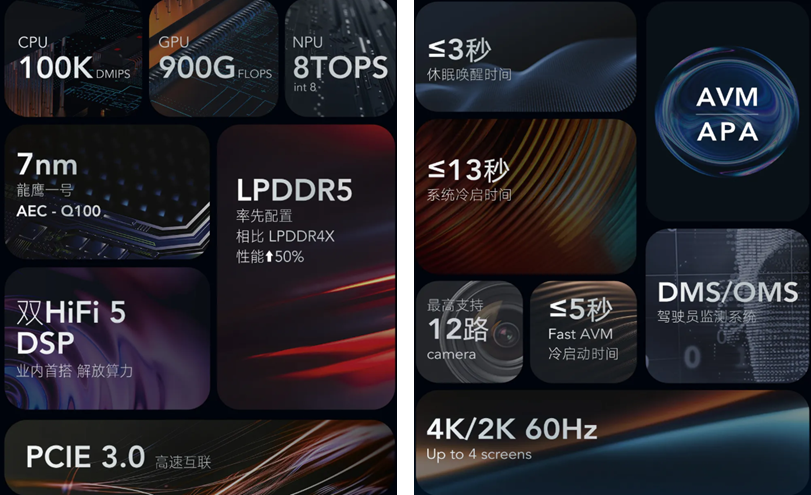 以芯擎科技为例,其首款旗舰产品龍鹰一号采用7nm先进制程工艺,集成了高性能的CPU、GPU及独立的NPU,不仅支持舱泊一体与L2级辅助驾驶功能,还具备高带宽、低延迟的内存支持以及丰富的视频信号接入能力。自发布以来已量产超百万片,广泛应用于吉利银河E5、一汽红旗等多款主流车型。