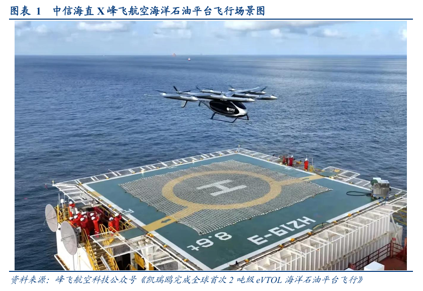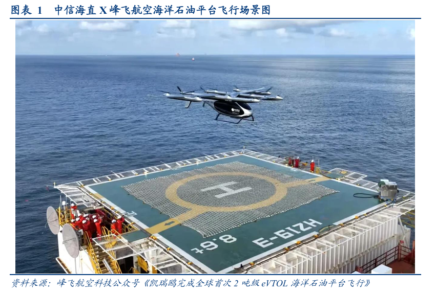 根据2025年8月3日峰飞航空公众号报道《凯瑞鸥完成全球首次2吨级eVTOL海洋石油平台飞行》、新闻联播公众号报道《新突破!我国自主研发的吨级无人飞行器首次完成海上平台物资运输》以及中信海直2025年半年报介绍,中国海油、中信海直及峰飞航空联合成功完成峰飞航空2吨级eVTOL全球首次海上石油平台物资运输飞行,这一突破不仅创新了远海物资补给模式,更标志着我国在海陆低空物流场景应用中迈出关键一步。