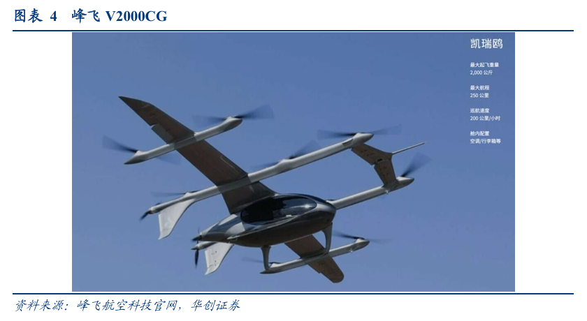 注:峰飞航空全自主研发的纯电驱动复合翼载货eVTOL V2000CG凯瑞鸥已获三证。