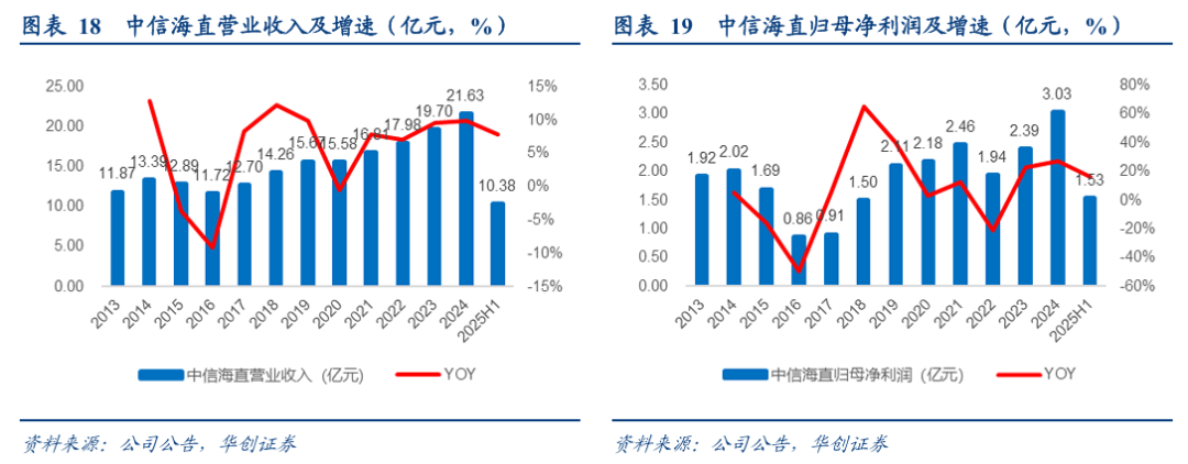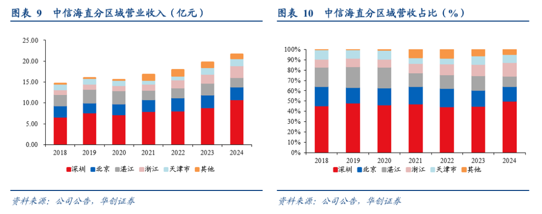 2)客户集中度及区域分布:中信海直相对均衡。