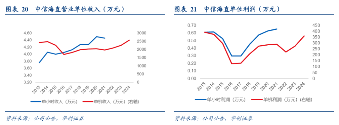公司2013-24年单机收入平均为2138万元,区间为1698万-2575万。单机净利平均为270万元,区间为125-392万元。