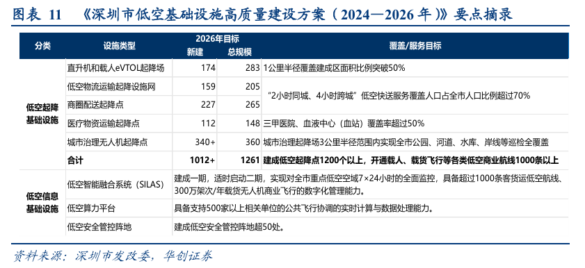深圳走在低空经济产业建设的前沿,深圳模式有望成为全国甚至全球重点参考的案例,深圳发改委公开本文件,意味着到2026年底诸多项目要实际落地,我们观察新增建设规模大,场景全面,无疑是对产业注入强心剂。