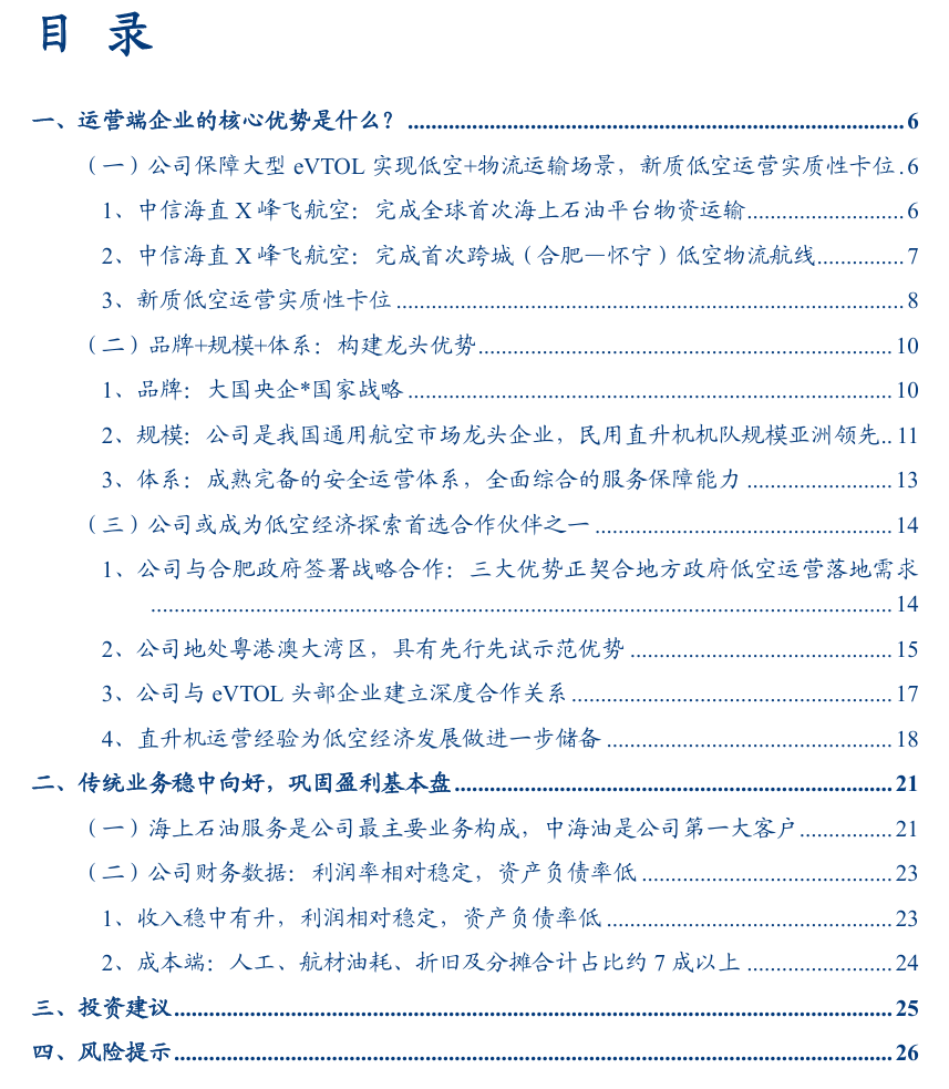 一年多过去,我们再次深入阅读公司,作为A股唯一具有超过40年通航运营经验的上市公司,属于稀缺标的,相较于此前三大逻辑,2025年下半年以来,公司在保障运营eVTOL新质产品从事“低空 物流”业务已经实质性落地,卡位优势十足。