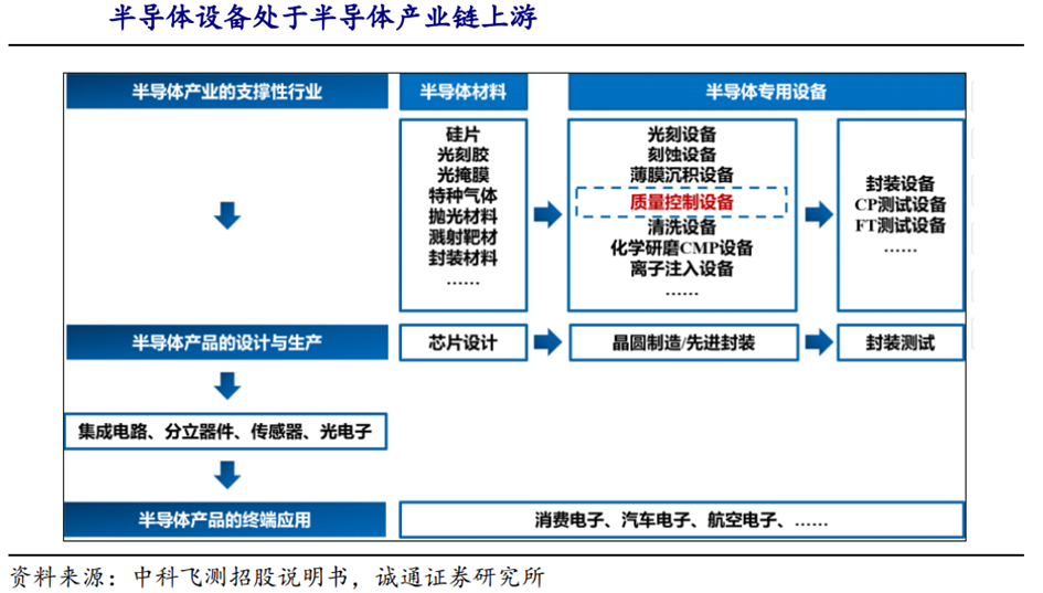半导体行业的产业链上游为半导体材料、半导体设备等支撑性行业;中游为芯片设计、晶圆制造和封装测试等环节,产业链下游为终端产品及其应用行业。