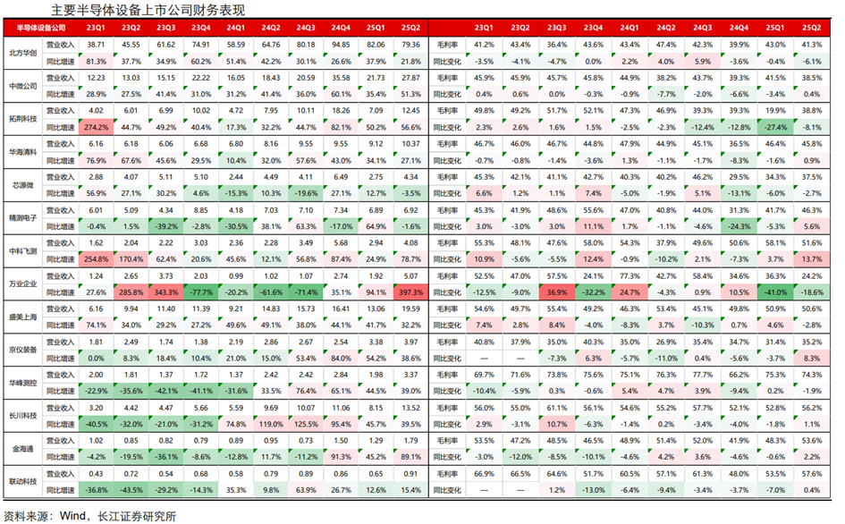 半导体设备市场规模持续增长,有望受益于国产替代浪潮:据SEMI统计,2024年中国大陆半导体设备市场达到创纪录的495亿美元,同比增长35.25%。根据SEMI数据,预计到2027年,中国大陆将持续保持其作为全球300mm设备支出第一的地位,在政府激励措施和芯片国产化政策的推动下,中国将继续引领全球晶圆厂设备支出。近年来,随着国际贸易不确定性的增强,前道涂胶显影设备的国产化替代得到了下游客户的高度重视和大力支持。公司作为目前国内唯一可以提供量产型前道涂胶显影机的厂商,经过长期的研发、多轮次验证及量产应用,目前已成功推出了包括offline、I-line、KrF及ArF浸没式在内的多种型号产品,2025年上半年,公司前道涂胶显影产品持续获得国内头部逻辑、存储等客户订单,offline、I-line、KrF机台在多家客户端量产跑片数据良好,客户认可度持续提升;公司前道物理清洗机获得国内领先逻辑、存储等客户批量订单,进一步夯实了公司在国内市场的龙头地位。目前,国内后道封测市场呈温和复苏态势,下游市场景气度良好,头部客户下单意愿较为积极,公司后道涂胶显影机、单片式湿法设备持续获得国内多家客户批量重复性订单。公司深耕先进封装领域多年,部分技术已达到国际领先水平,具有较强的全球竞争力,已获得多家海外客户的持续认可,2025年上半年,公司继续获得海外封装龙头客户批量重复性订单。