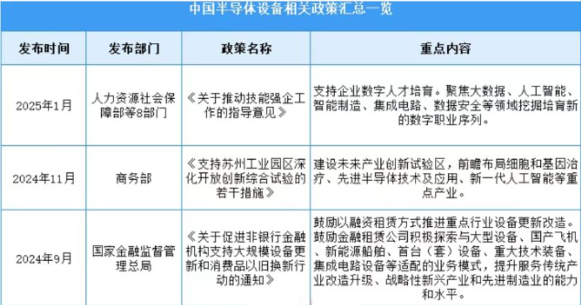 2025年政策持续加码,如《关于促进非银行金融机构支持设备更新》鼓励以融资租赁方式推进国产半导体设备普及,叠加关税不确定性加速替代进程。