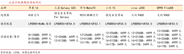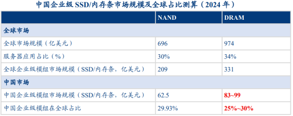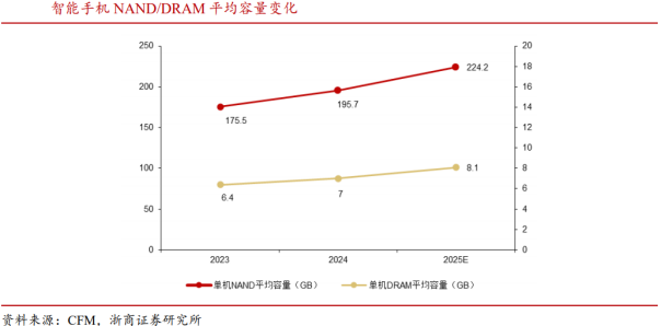 AI产业趋势下“云侧”和“端侧”需求改善叠加上游减产,需求 供给联合驱动本轮周期复苏。22~24年的上一轮周期主要由供给驱动,需求确定性低,股价上涨持续性较差;对比来看本轮周期在AI驱动下需求确定性高,新一轮减产和涨价落地叠加企业级存储国产化加速,国内公司有望实现业绩和估值的双重提升带来股价持续上涨,开启新一轮景气周期。随着大模型技术的爆发式发展,人工智能存储正经历前所未有的变革。AI大模型训练对数据吞吐量和计算效率的要求激增,根据中国通信院数据,2025年全球AI训练数据量将达到惊人的1.2ZB(1ZB=10亿TB),是2022年的15倍,这一爆炸式增长直接推动了存储技术的革新,促进存储技术向高带宽、低延迟方向升级。HBM作为GPU的“黄金搭档”,通过3D堆叠和TSV(硅通孔)技术实现带宽跃升。根据CFM闪存市场发布《2024-2025年全球存储市场趋势白皮书》,2024年全球HBM市场规模达160亿美元,同比增长300%,预计2025年突破300亿美元,占DRAM市场28%。HBM高速发展,推升了DDR5的需求。DDR5内存的高速度和大容量特性,特别适合需要处理大量数据和执行复杂计算任务的应用。DDR5传输速率达6.4Gbps,是DDR4的2倍以上,且单条容量可突破64GB,完美适配AI服务器高并发数据处理需求。HBM快速发展带来的丰厚利润和规模增长前景,令存储原厂持乐观态度并积极扩大HBM产能。据CFM数据显示,按2025年初HBM的市场价格,HBMperGBASP约为DDR5RDIMM的2.5至3倍。AI服务器需求明朗且高性能存储利润充裕,叠加消费类需求复苏缓慢,因此存储原厂积极调整产能,在有限的资本支出下,将旧制程产线升级至先进制程,并将先进产能倾向于高利润的DDR5和HBM。端侧智能终端迎来存储容量与性能双重升级。端侧大模型推动智能手机内存需求跃升。2024年各大手机制造商竞相研发适用于移动设备的大型模型。然而,要在手机中集成这些大模型,需要克服包括算力、内存管理、存储空间以及电池效率等方面的问题。因此,除了苹果之外,其他主流手机厂商的新一代旗舰机型普遍配备了12GB的DRAM,预计2025年后将逐步过渡到16GB以上甚至更高。同时,NAND闪存容量也正从256GB向512GB乃至1TB的方向发展。据CFM闪存市场的预测数据表明,2025年单部智能手机的NAND闪存平均容量有望突破220GB,而DRAM容量也有望突破8GB。UFS4.0在高端智能手机中渗透率的提升,为江波龙等模组厂带来技术升级红利与市场份额扩张的双重机遇。根据CFM的市场调研,当前智能手机嵌入式存储的需求趋势呈现出分层特征。eMMC5.1的需求量趋于平稳,UFS3.1已成为5G普及型机型的主流选择,并保持着稳定的增长势头。而在高端与旗舰级设备中,UFS4.0的应用范围正迅速扩大,以满足不断增长的人工智能功能需求。各大品牌厂商高端旗舰机型竞争激烈,“高性能SOC处理器 LPDDR5/5X UFS4.0”被视为新一代性能铁三角。2024年末发布的旗舰标准版手机,大多数都配备了最新的处理器,同时搭配了顶级的LPDDR5/5X内存和UFS4.0存储配置。AIPC有望推动消费类PCIe 4.0/5.0 SSD应用增长。2024年全球PC出货量预计达到2.53亿台,其中AIPC出货量约为4500万台,占整体市场的18%。AIPC凭借本地AI大模型所带来的便捷性、数据安全性和提升工作效率等优势受到市场欢迎。随着芯片厂商与PC制造商不断推出AIPC相关产品,产业链的规模效应逐步显现。市场热度有望在2025年至2026年持续攀升。在PC领域,随着AIPC渗透率不断提升,以及NAND Flash芯片性能和主控技术的持续优化,PCIe 4.0/5.0SSD的应用比例已超过75%。凭借更高的性能和更低的功耗,PCIe 5.0 SSD有望率先在AIPC中得到广泛应用。据CFM预测,2025年至2026年期间,PCIe 4.0 SSD将成为市场主流,而PCIe 5.0 SSD则逐步进入高端消费和企业级市场。智能驾驶重塑存储架构与技术需求,车载存储容量需求快速成长。随着智能驾驶技术的快速发展,车载存储系统正经历从“分散式”向“集中式”的根本性变革。传统汽车电子架构中,多个独立ECU(电子控制单元)各自管理不同功能模块(如动力系统、娱乐系统、驾驶辅助等),导致存储资源分散且冗余。而智能驾驶对多模态感知数据(摄像头、雷达、激光雷达)、高精度地图、AI算法模型的实时处理需求,迫使车企采用集中式电子电气架构(EEA),通过域控制器或中央计算平台实现算力与存储资源的统一调配。这一转型直接推动了车载存储容量高速增长。2024年,智能座舱的DRAM需求已攀升至8-16GB,NAND Flash容量更是突破1TB(较2022年翻倍),为过去NOR Flash主导的存储规格标准带来颠覆性革新。服务器成为核心驱动力,AI将重构储存产品应用。随着各大云服务提供商加大对数据中心的投资,据麦肯锡《The cost of compute:A$7 trillion race to scale data centers》(2024)报告,到2030年,全球数据中心预计需要6.7万亿美元才能满足计算能力的需求。用于处理人工智能负载的数据中心预计需要5.2万亿美元的资本支出。在如此庞大的投资背景下,存储的选择至关重要。在AI推理、实时分析、在线事务处理等业务上,传统HDD的毫秒级延迟已无法满足需求。相比之下,企业级NVMe SSD能提供数十万IOPS、微秒级延迟,显著提升应用响应速度,成为“热数据”首选存储层。同时随着60TB、122TB等高容量SSD的量产,SSD的单位容量成本已从两年前的$0.15-0.20降至$0.10以下,SSD价格开始接近甚至优于部分企业级HDD型号。成本拐点一旦出现,SSD在吞吐、空间密度和能耗三方面的优势就能全面释放,驱动其