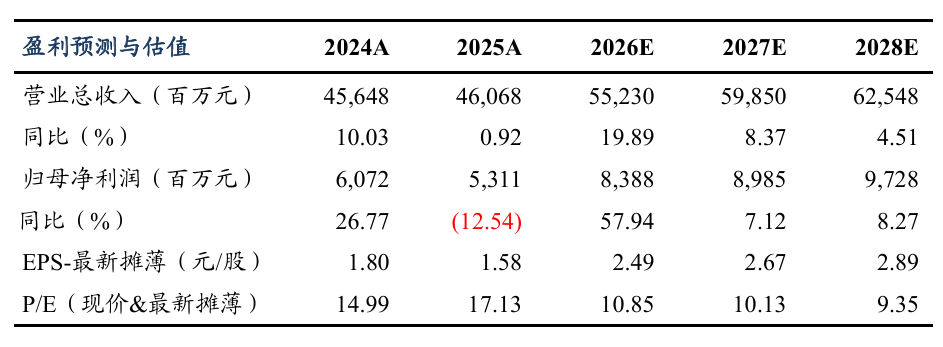 盈利保持韧性,有效抵御外部环境波动:公司近期发布2025年年报,全年实现营业收入460.68亿元(同比 0.92%);实现归母净利润53.11亿元(同比-12.54%);实现扣非后归母净利润62.92亿元(同比 4.02%)。整体来看,公司经营基本面保持稳健,业绩符合我们预期。