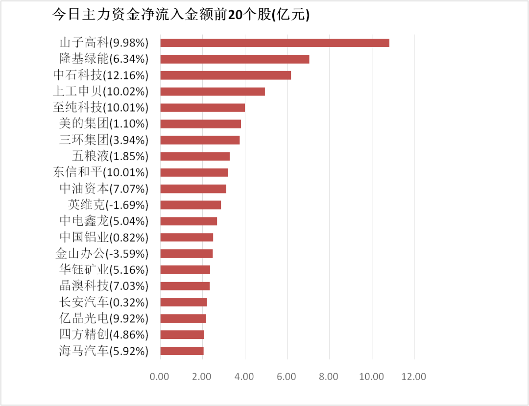 4.山子高科主力资金净流入10.81亿元居首