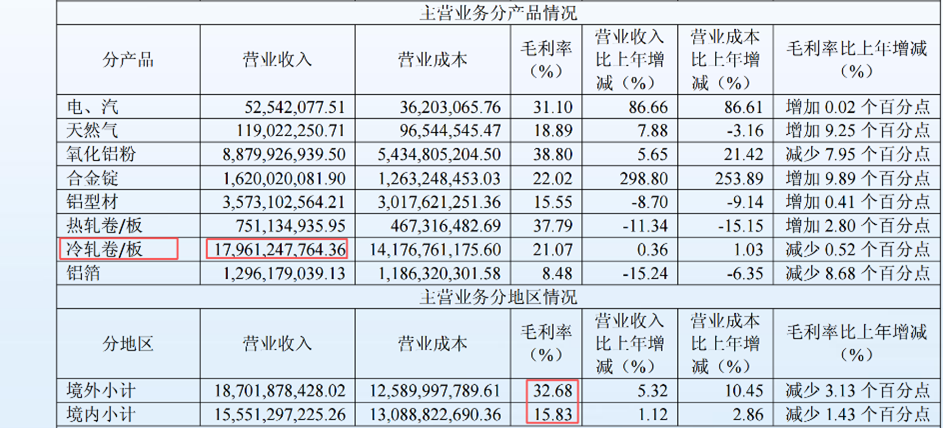 而这种转型带来的直接好处就是市场更广阔,利润更丰厚。一个很能说明问题的数据是,南山铝业的国外营收占比已经达到了54.02%,并且海外业务32.68%的毛利率远高于国内的15.83%。这说明南山铝业已经成功嵌入全球高端产业链,赚的是技术和品牌的钱。