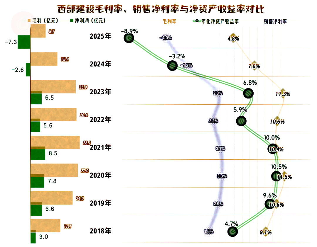 2023年及以前的净资产收益率是优秀级的水平,最近两年急转直下。西部建设所处行业和企业性质都决定了,其不可能快速调整来应对市场的急剧变化。其实,营收和毛利率被双重暴击,也不见得能快速调整的企业,就真有效果。