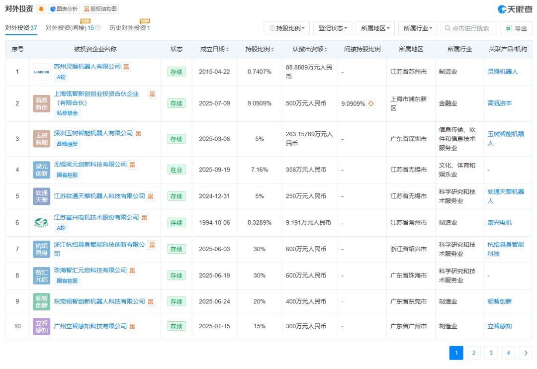 不差钱的智元,自然也想打造自己的资本帝国。天眼查显示,成立至今,智元已直接投资了20余家具身智能产业链上的创业公司,布局涵盖了机器人零部件、具身智能系统、仿生机器人等多个领域。