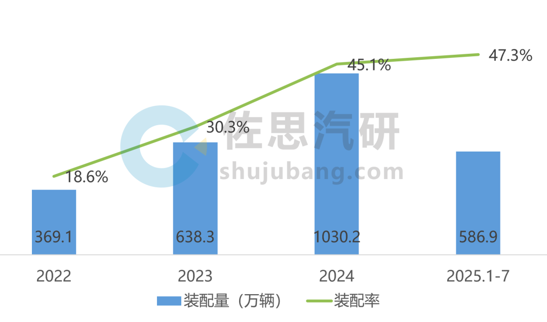 2024年,线控制动EHB装配量突破1000万辆,同比大幅增长61.4%。2025年1-7月,EHB装配量接近600万辆,预计2025年全年,EHB装配量将突破1200万辆。从装配率来看,2025年全年装配率预计将突破50%。