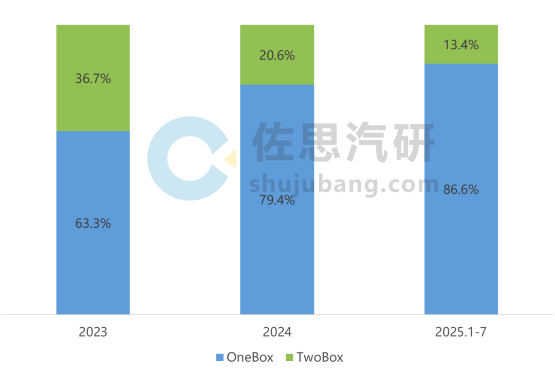 分EHB技术类型来看,OneBox产品占比持续提升。2024年,OneBox市占比79.4%(vs. 63.3%, 2023年),2025年1-7月,该数字持续增长至86.6%。在OneBox市场中,博世、大陆集团、伯特利合计占据超70%的市场份额。