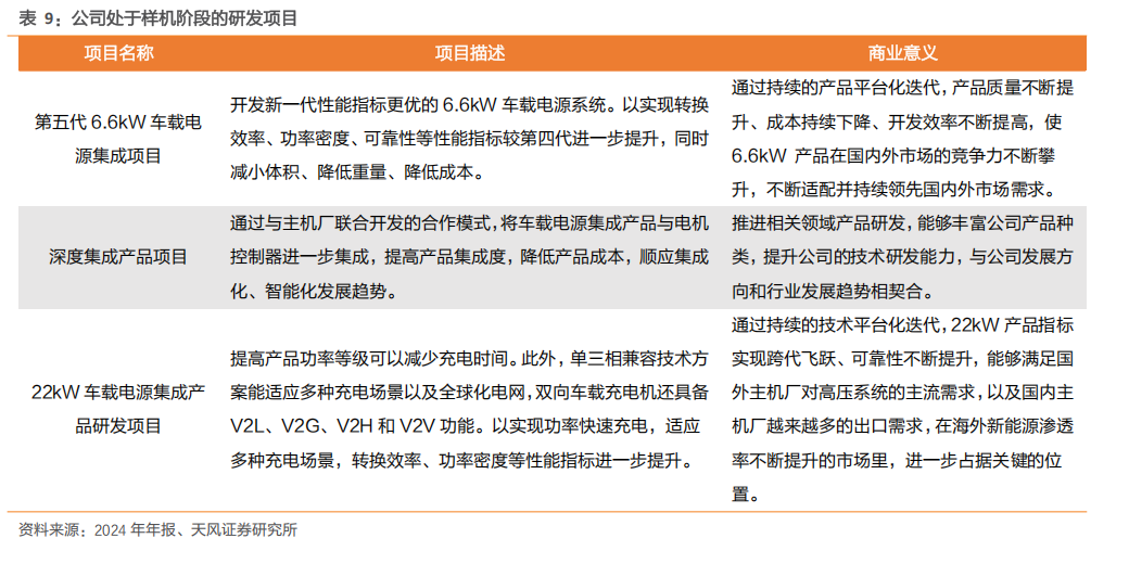 集成化产品品类持续丰富,深度集成产品有望实现突破。公司积极运用电力电子变换技术、数字化及模块化的软件开发技术、高效能热管理和结构设计技术等,进一步探索车载高压电源产品与电机控制器的集成化研究,为公司产品往深层次方向集成奠定基础。