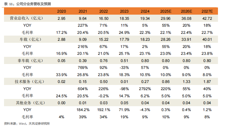 车载电源产品:主要包括大功率集成产品,顺应高集成化发展趋势。我们预计2025–2027年该业务收入有望实现28.26亿元、33.91亿元和40.01亿元。