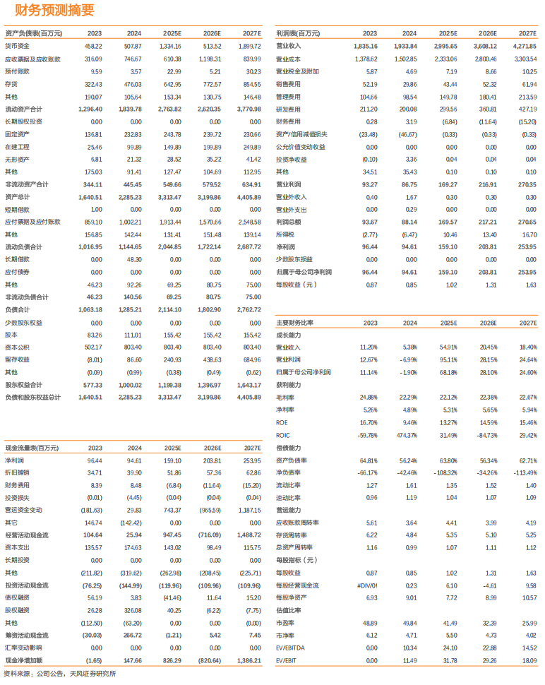 技术服务:预计公司2025–2027年技术服务收入分别为0.86亿元、1.33亿元和1.87亿元。