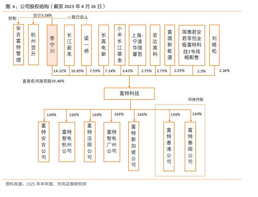 公司股权结构稳定,李宁川系实际控制人。李宁川现任公司董事长、总经理,直接持有公司14.32%的股份,通过杭州翌升投资管理合伙企业(有限合伙)和安吉富特管理合伙企业(有限合伙)合计控制公司3.58%股份,通过与梁一桥签署《一致行动人协议》控制公司7.59%的股份。因此李宁川直接或间接控制公司25.48%的股份,系公司的实际控制人。