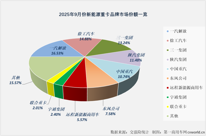 9月份,新能源重卡销量再创新高,并创造了多项新纪录。