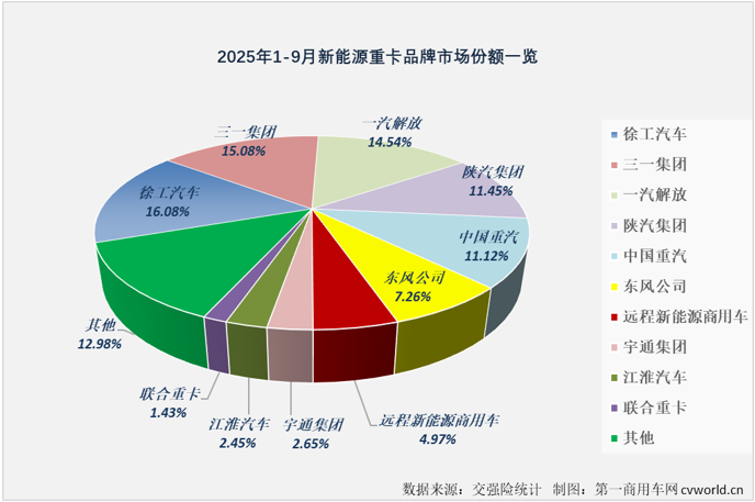 2025年1-9月新能源重卡企业销量表(单位:辆)