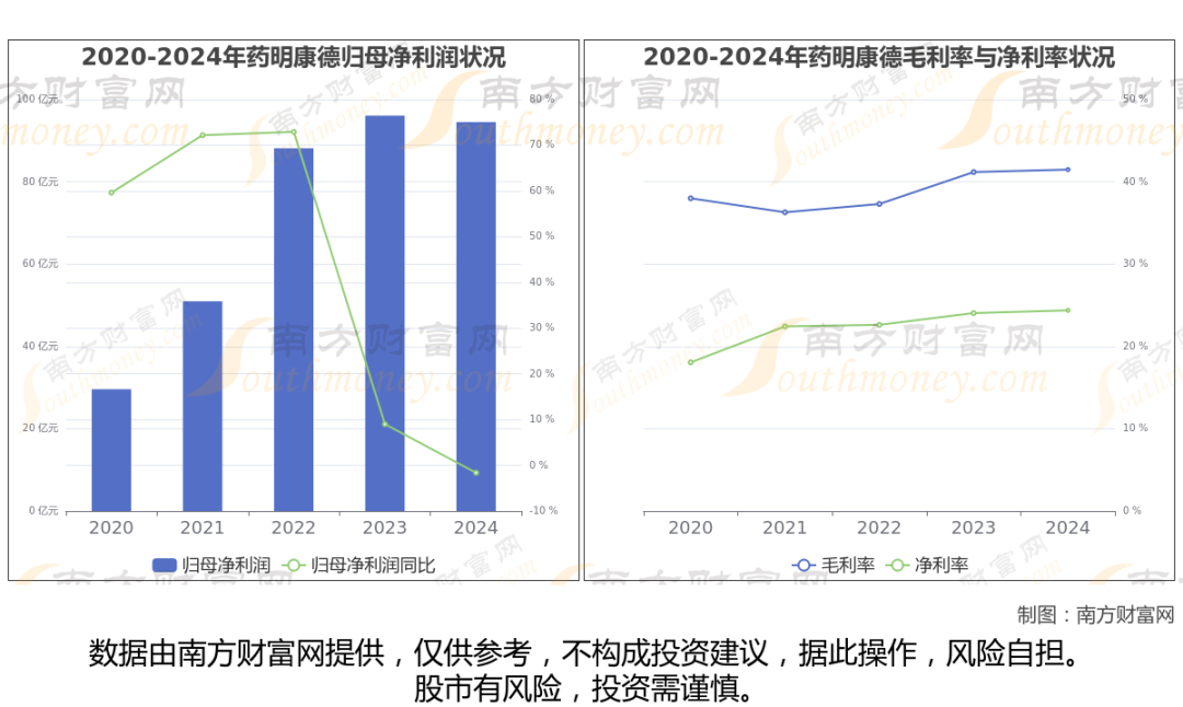 2024年公司归母净利润94.5亿元,同比增长-1.63%。净利润94.5亿,近5年复合年增长率33.67%;净利率24.38%,近5年复合年增长率7.79%;毛利率41.48%,近5年复合年增长率2.22%。