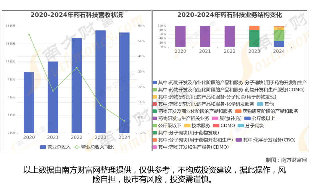 (如上图)药石科技2024年全年营业收入为16.89亿,同比增长-2.12%,近五年复合年增长率13.37%。