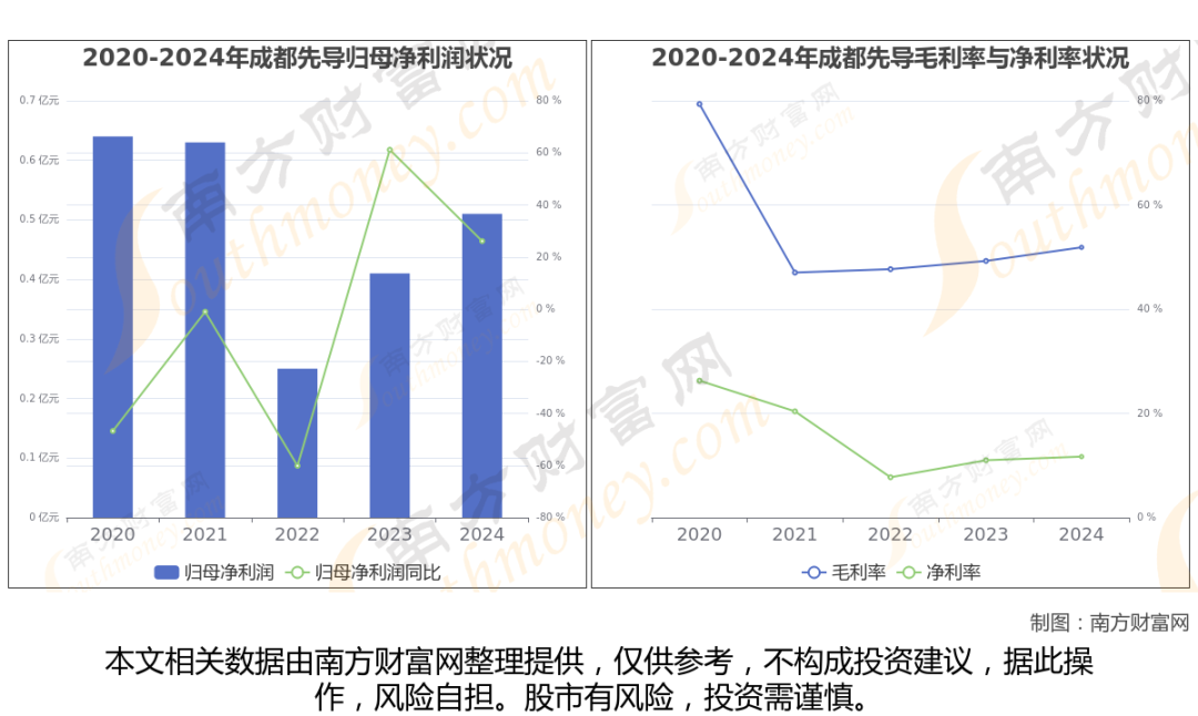 2024年公司归母净利润5135.71万元,同比增长26.13%。净利润5135.71万,近5年复合年增长率-5.36%;净利率11.69%,近5年复合年增长率-18.33%;毛利率51.86%,近5年复合年增长率-10.09%。