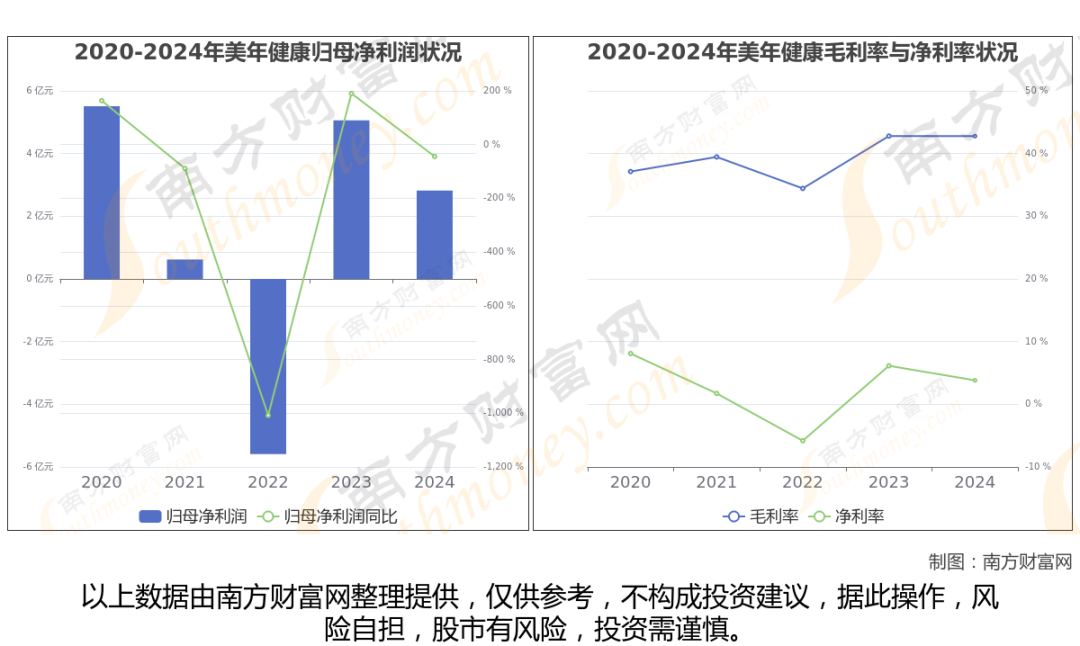 2024年公司归母净利润2.82亿元,同比增长-44.18%。净利润2.82亿,近5年复合年增长率-15.4%;净利率3.82%,近5年复合年增长率-17.13%;毛利率42.78%,近5年复合年增长率3.6%。