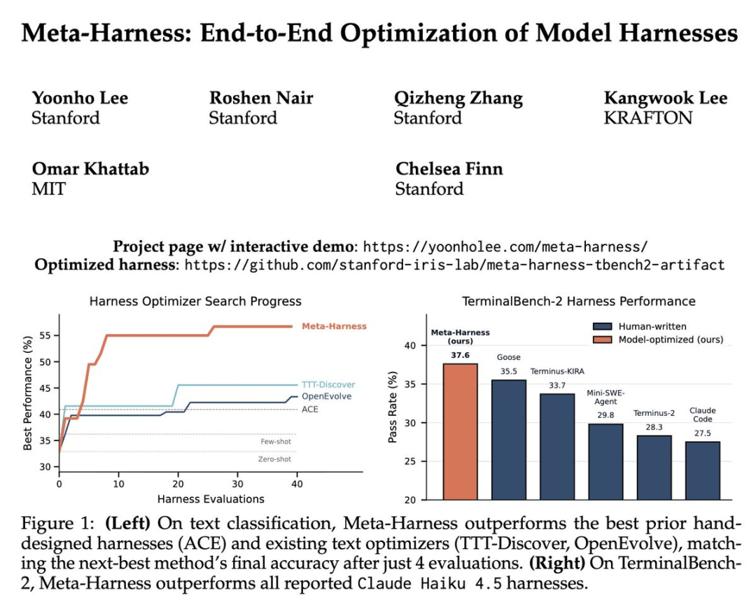 就在这两天,斯坦福IRIS Lab的博士生Yoonho Lee联合MIT、威斯康星大学的研究者放出一篇新论文,把AI智能体优化的逻辑翻了个个儿。