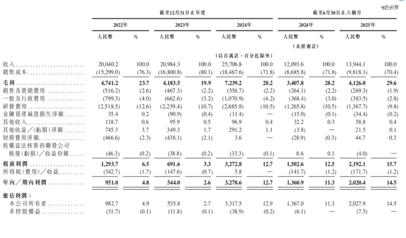 业绩方面,2023年、2024年、2025年前6个月,豪威集团营收分别为209.84亿元、257.07亿元和139.44亿元。相应的净利润分别为5.44亿元、32.79亿元和20.20亿元。
