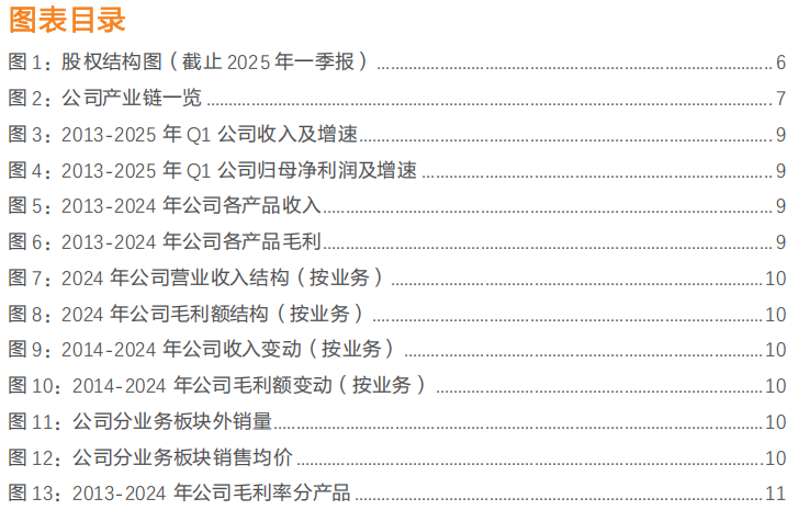 浙江巨化股份有限公司成立于1998年,是国内领先的氟化工、氯碱化工新材料先进制造业基地。公司控股股东为巨化集团有限公司,实控人为浙江省国资委。公司产品可分为氟化工原料、氟制冷剂、含氟聚合物、含氟精细化学品、食品包装材料、石化材料、基础化工产品七大类。2013-2024年公司收入与归母净利润CAGR分别为8.7%/20.4%,增长主要驱动力为制冷剂与基础化工品板块量增。公司过半收入来自制冷剂与石化材料(2024收入占比分别为38%/17%),近六成毛利来自制冷剂(2024占比64%)。