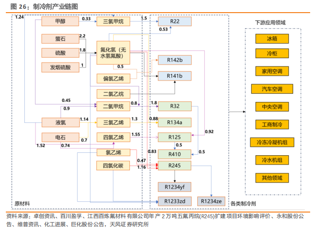 3、制冷剂替代品进展超预期:若碳氢类制冷剂、四代制冷剂在海内外应用超预期,将对三代制冷剂下游需求造成负面影响。