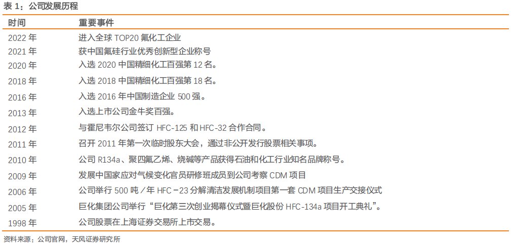 浙江巨化股份有限公司(简称“巨化股份”或“公司”)成立于1998年,同年于上交所上市,是国内领先的氟化工、氯碱化工新材料先进制造业基地。
