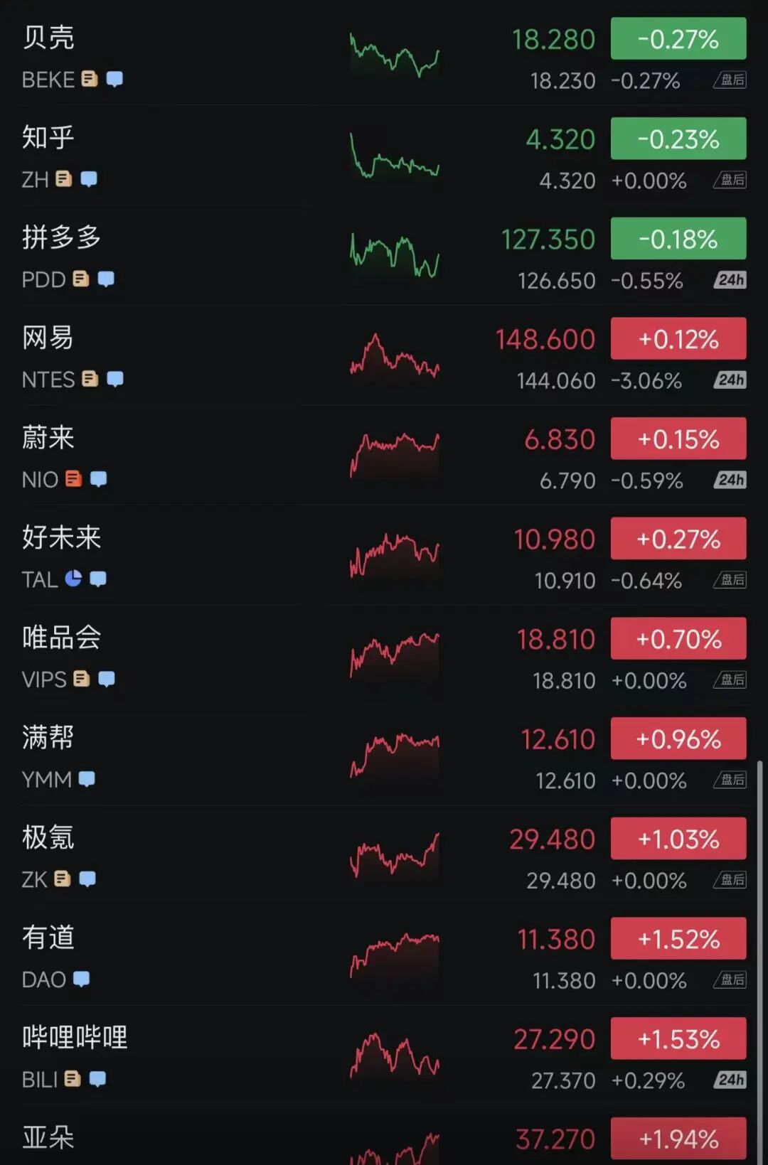 纳斯达克中国金龙指数收跌0.91%,热门中概股多数下跌,世纪互联跌超5%,金山云跌超2%,小鹏汽车、京东、名创优品跌超1%,哔哩哔哩涨超1%。