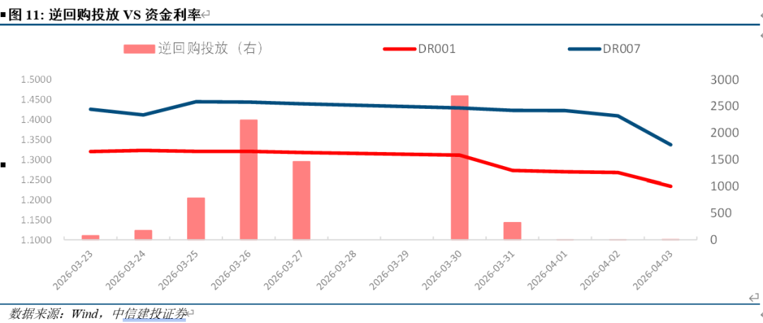 本周央行公开市场操作共有4742亿元7天逆回购到期,累计开展了3040亿元7天逆回购操作,央行本周全口径净回笼1702亿元。央行公告表示3月公开市场国债买卖净投放500亿元。本周DR007在1.33-1.42%之间运作,周均值较上周下行2.88BP至1.4%。