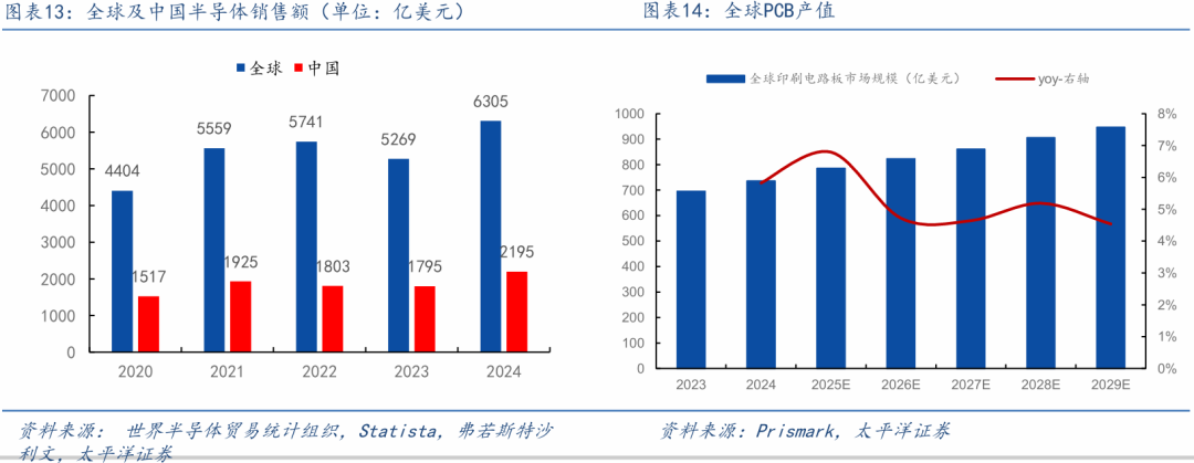 AI爆发,叠加先进制程工艺演进,驱动半导体及电子制造领域需求。伴随算力爆发,对高多层数、高速材料的PCB需求日益增长,PCB行业资本开支景气度持续升高。X射线检测设备作为PCB及PCBA制程质量控制的关键环节,能够有效检测焊点缺陷、线路开路等质量问题,将充分受益于PCB行业扩产周期。从PCB产值看,据Prismark的统计预测,25年全球PCB产值有望达到786亿美元,同比增长6.8%;24-29年预计以5%复合增速增长,至29年,全球PCB总产值预计增长至947亿美元。集成电路及电子制造行业的稳健增长,为相关检测设备需求的带来增长动能。